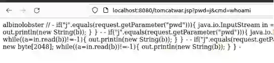 这部分有效载荷会在 Tomcat ROOT 目录中放置一个名为 tomcatwar.jsp、受到密码保护的 webshell,内容如下: