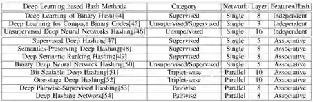 对当前几种经典的基于深度学习哈希方法的分类细节详见表2.2,其中标号为[1]中参考文献。