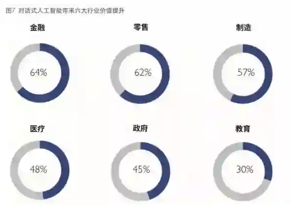 据IDC研究,预计在未来5年内,对话式人工智能在金融、零售、制造、医疗、政府和教育等六大行业至少会带来30%-64%的价值提升。