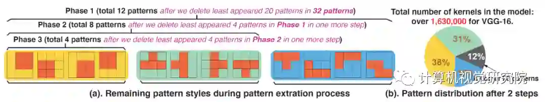 通过上述理论推导,我们得到了八种卷积核模式作为模式集。但是,一些至关重要的问题仍未得到解决。例如,这些从理论层面得出的最优模式集在算法实现层面上也是最理想的吗?即便以上问题的答案是肯定的,那么如何为每个卷积核选择合适的卷积核模式并训练非零权重?