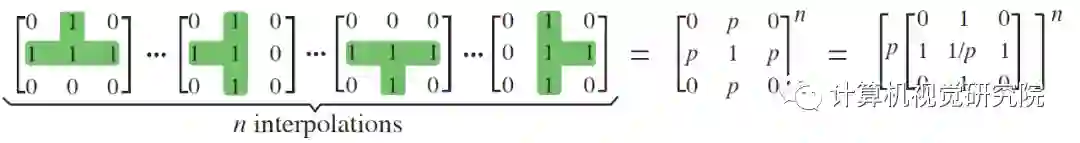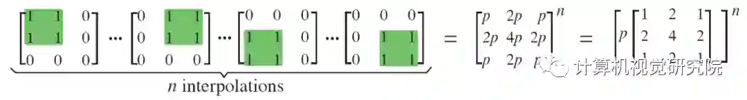 图 3 展示了该研究设计的八种卷积核模式,通过 n 次插值,图 3(上)能够得到高斯滤波器,图 3(下)能够得到增强型拉普拉斯高斯滤波器。其中 n 代表神经根网络层数,系数 p 为任意位置 1 出现的概率,在正则化运算后没有实际意义。