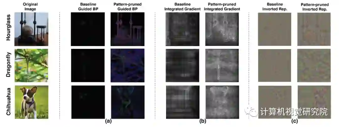 将图像的细节「看得」更清了。如图 6 所示,通过不同的可视化方法,经过模式化剪枝的