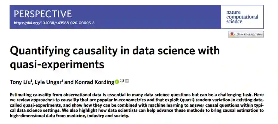 在许多数据科学问题中,由观测数据估计因果关系是一项极具挑战但又十分必要的环节。基于观察数据、利用数据的随机波动——即借助准实验判定因果关系的方法。同时,作者展示了如何将该方法与机器学习相结合,在典型的数据科学环境中回答因果问题。该文还强调了数据科学家如何能够帮助推进这些方法,从而对来自医学、工业和社会中的高维数据进行因果估计。