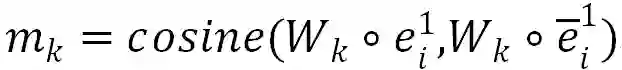 是从第 k 个角度得到的匹配值。这个匹配值是通过计算两个权重向量的 cosine 相似得到的。