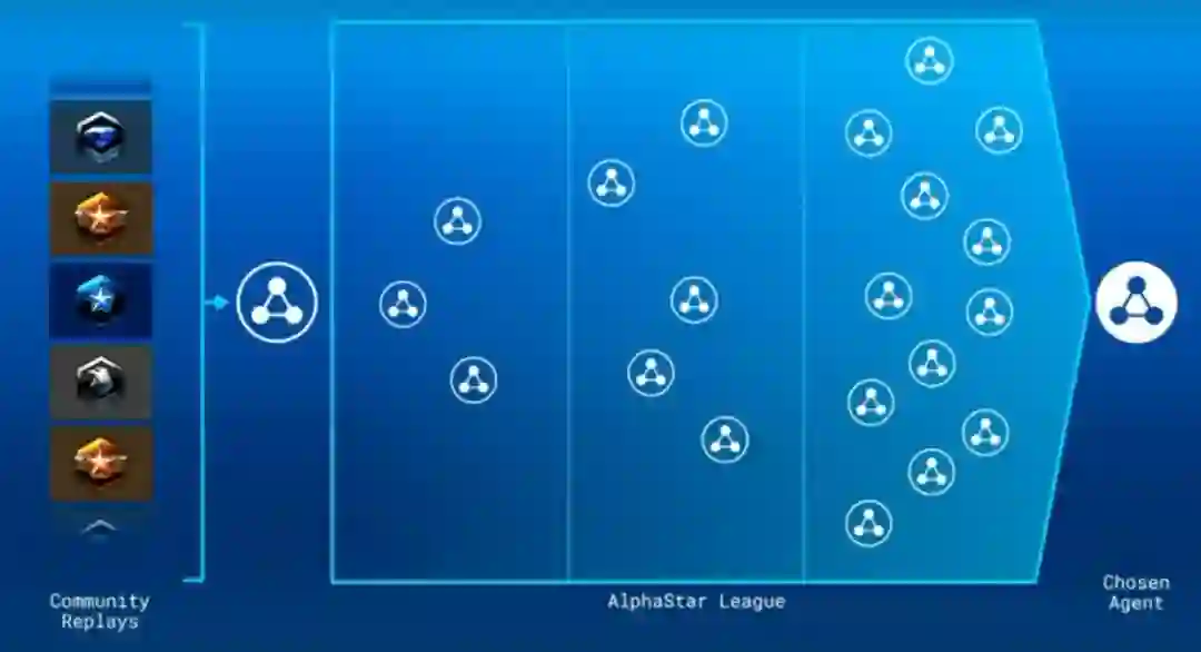 这项技术被称为多智能体强化学习过程,通过集体经验学习。随着新的Agent加入到联盟中,他们分叉并参与越来越多的比赛,通过强化学习在每个阶段采用新策略,同时不忘记如何击败早期的策略。