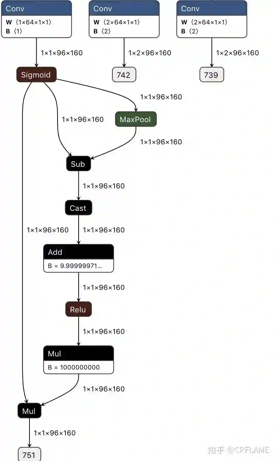 值得注意的是上述骚操作在转caffe的时候会报错,所以不能加。如果非要添加上去,得在caffe的prototxt中自行添加scale层,elementwise层,relu层,这个笔者没有实现,大家感兴趣可以自行添加。