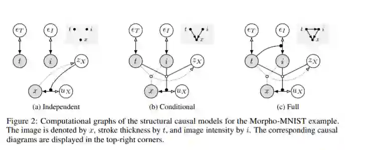 我们为构建带有深度学习组件的结构性因果模型(SCMs)制定了一个总体框架。所提出的方法采用了流归一化和变分推理,以实现对外生噪声变量的可处理推理——这是反事实推理的关键一步,而这正是现有的深度因果学习方法所缺少的。我们的框架在构建在MNIST上的合成数据集以及真实世界的脑核磁共振扫描医学数据集上得到验证。我们的实验结果表明,我们可以成功地训练深度SCMs,使其具备Pearl因果关系阶梯的所有三个层次:关联、干预和反事实,从而为在成像应用和其他方面回答因果问题提供了一种强大的新方法。