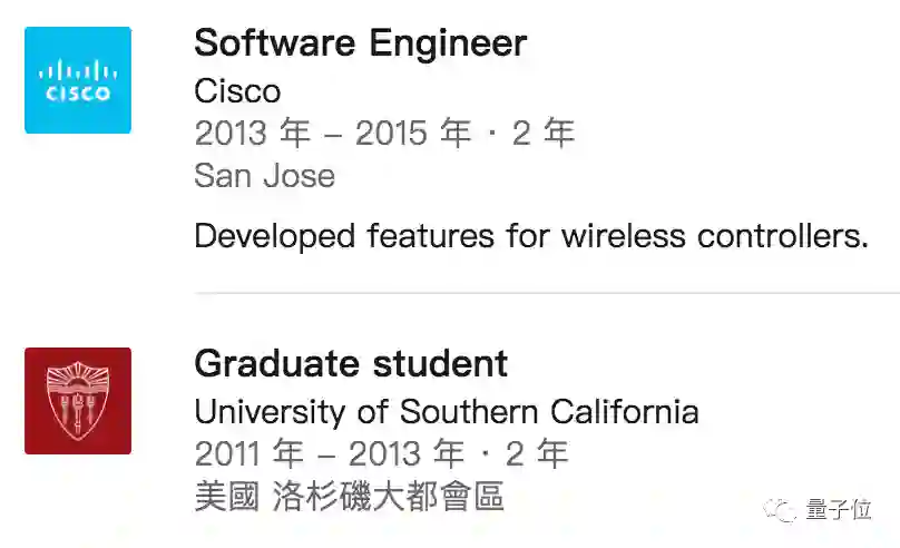 2013年,Chen从南加大研究生毕业,便顺利进入思科 (Cisco) 做软件开发。