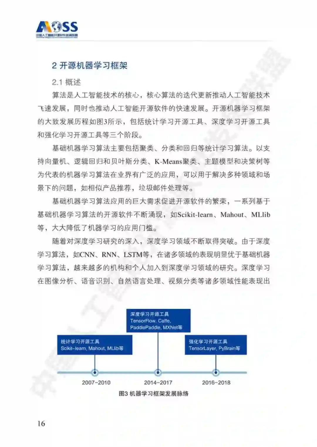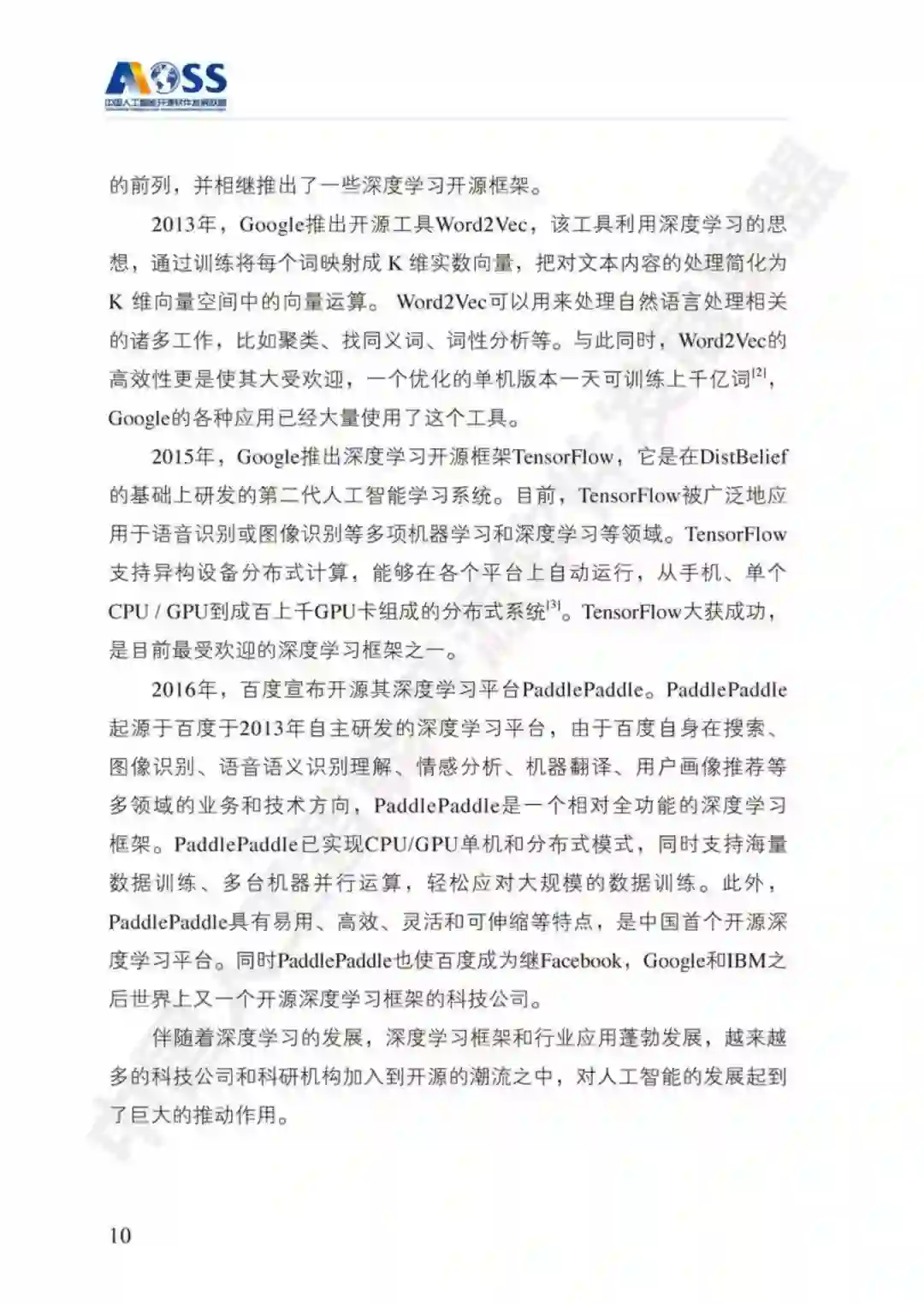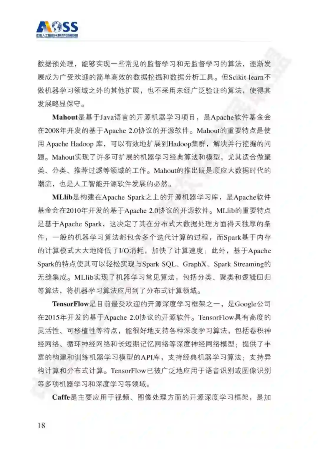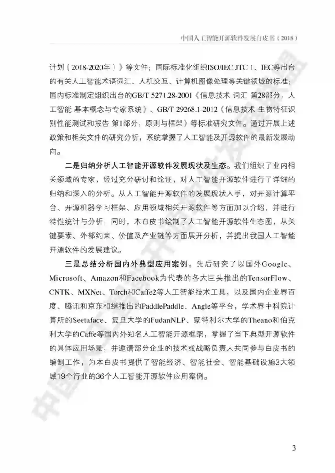 为推动人工智能开源软件快速而健康的发展,中国人工智能开源软件发展联盟召集中国电子技术标准化研究院、上海软件中心、北京大学、微众银行、蚂蚁金服、京东等企事业单位,研究梳理人工智能开源软件发展现状,分析人工智能开源软件生态,提出我国人工智能开源软件发展建议,并提炼我国人工智能开源软件应用案例,编撰形成了《中国人工智能开源软件发展白皮书(2018)》,已作为联盟的一项重要成果发布。