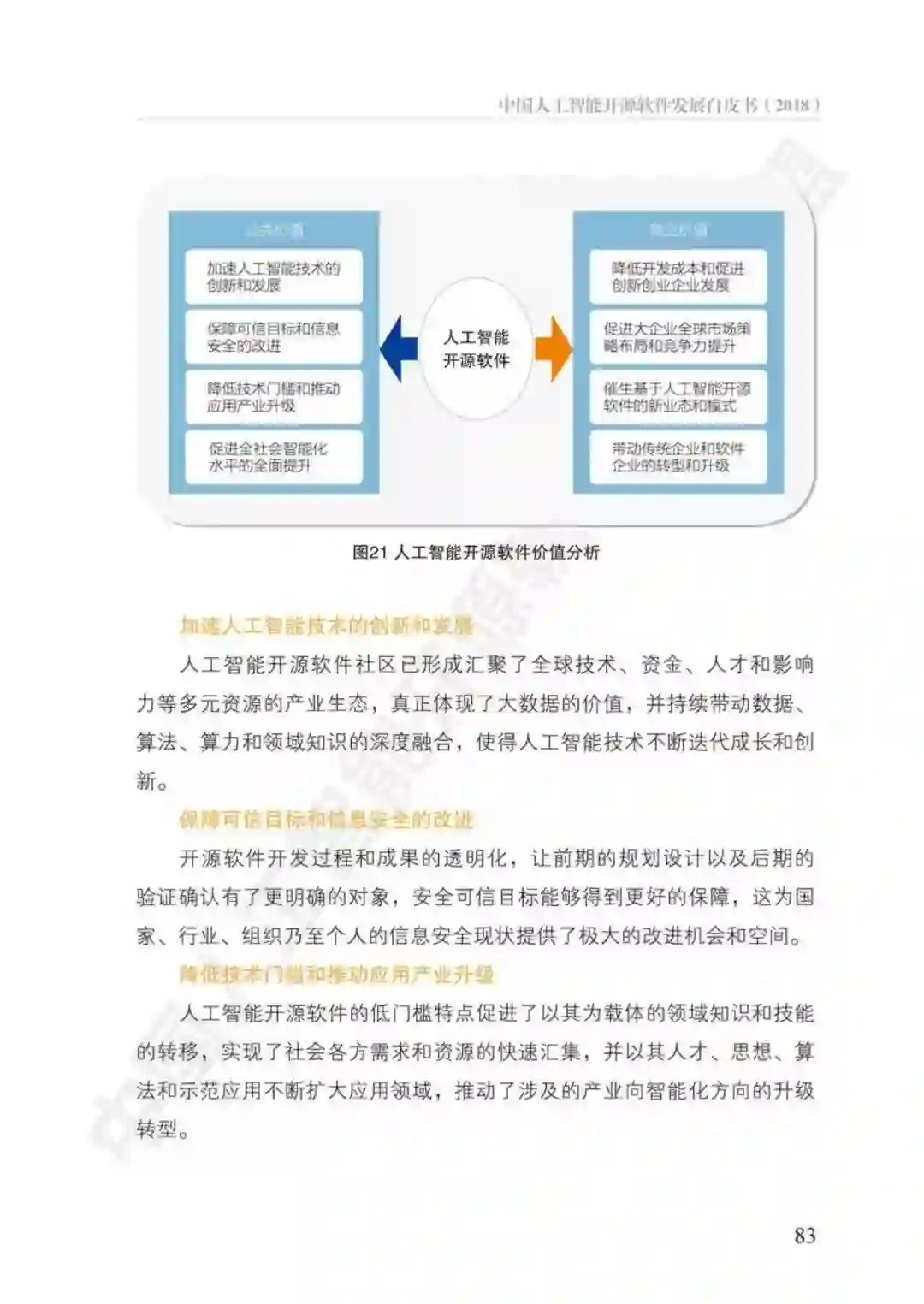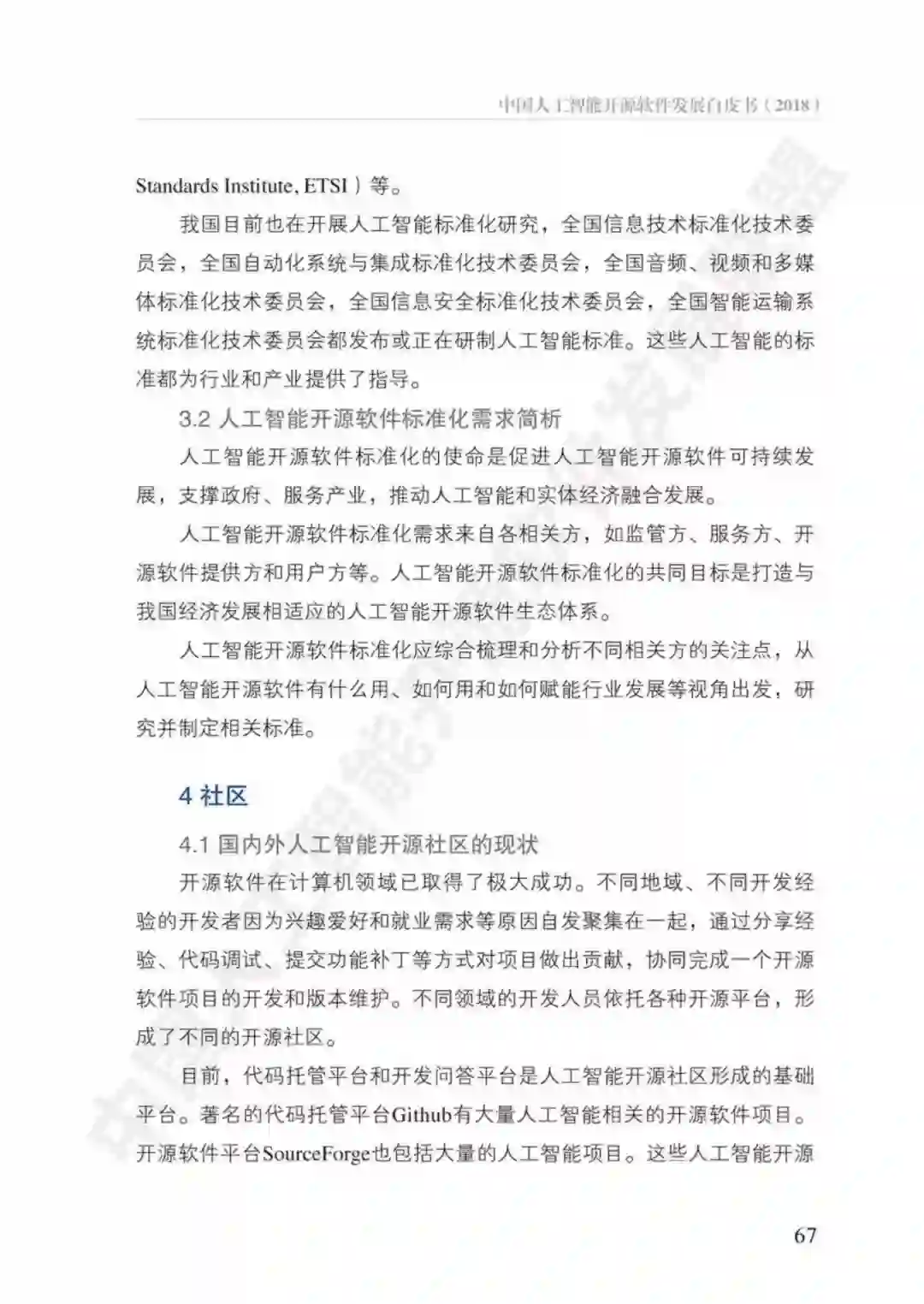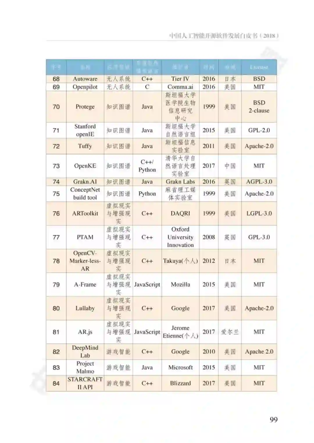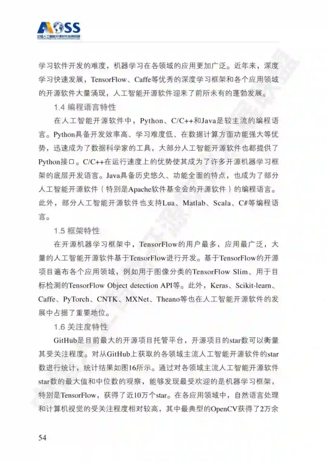 为推动人工智能开源软件快速而健康的发展,中国人工智能开源软件发展联盟召集中国电子技术标准化研究院、上海软件中心、北京大学、微众银行、蚂蚁金服、京东等企事业单位,研究梳理人工智能开源软件发展现状,分析人工智能开源软件生态,提出我国人工智能开源软件发展建议,并提炼我国人工智能开源软件应用案例,编撰形成了《中国人工智能开源软件发展白皮书(2018)》,已作为联盟的一项重要成果发布。