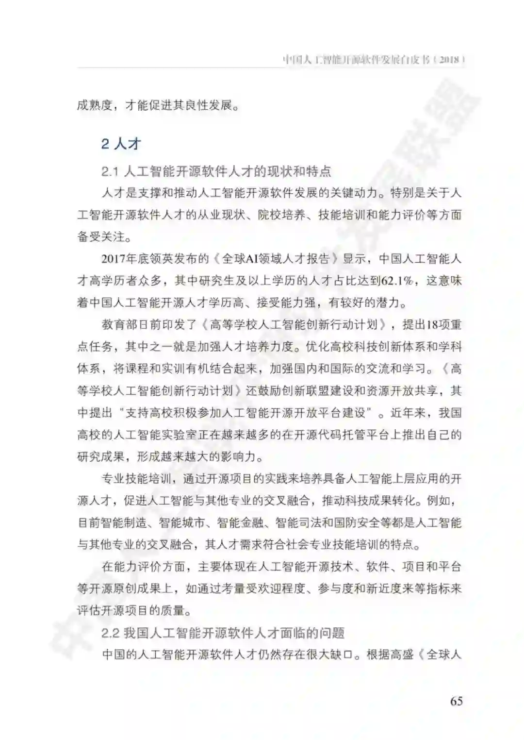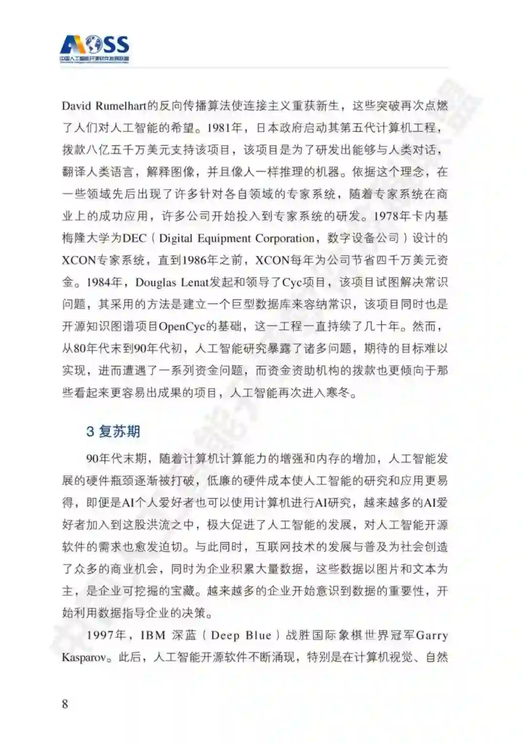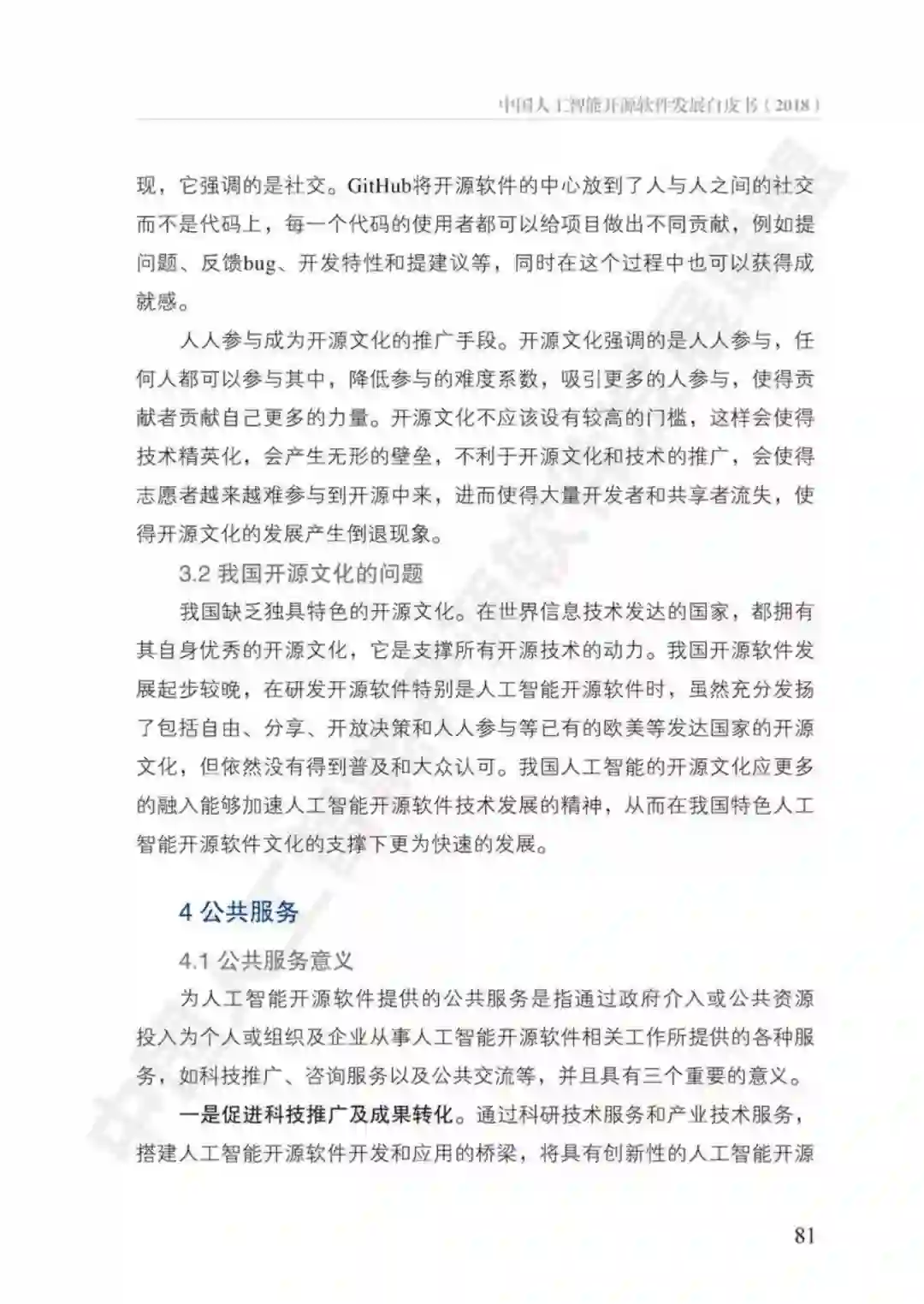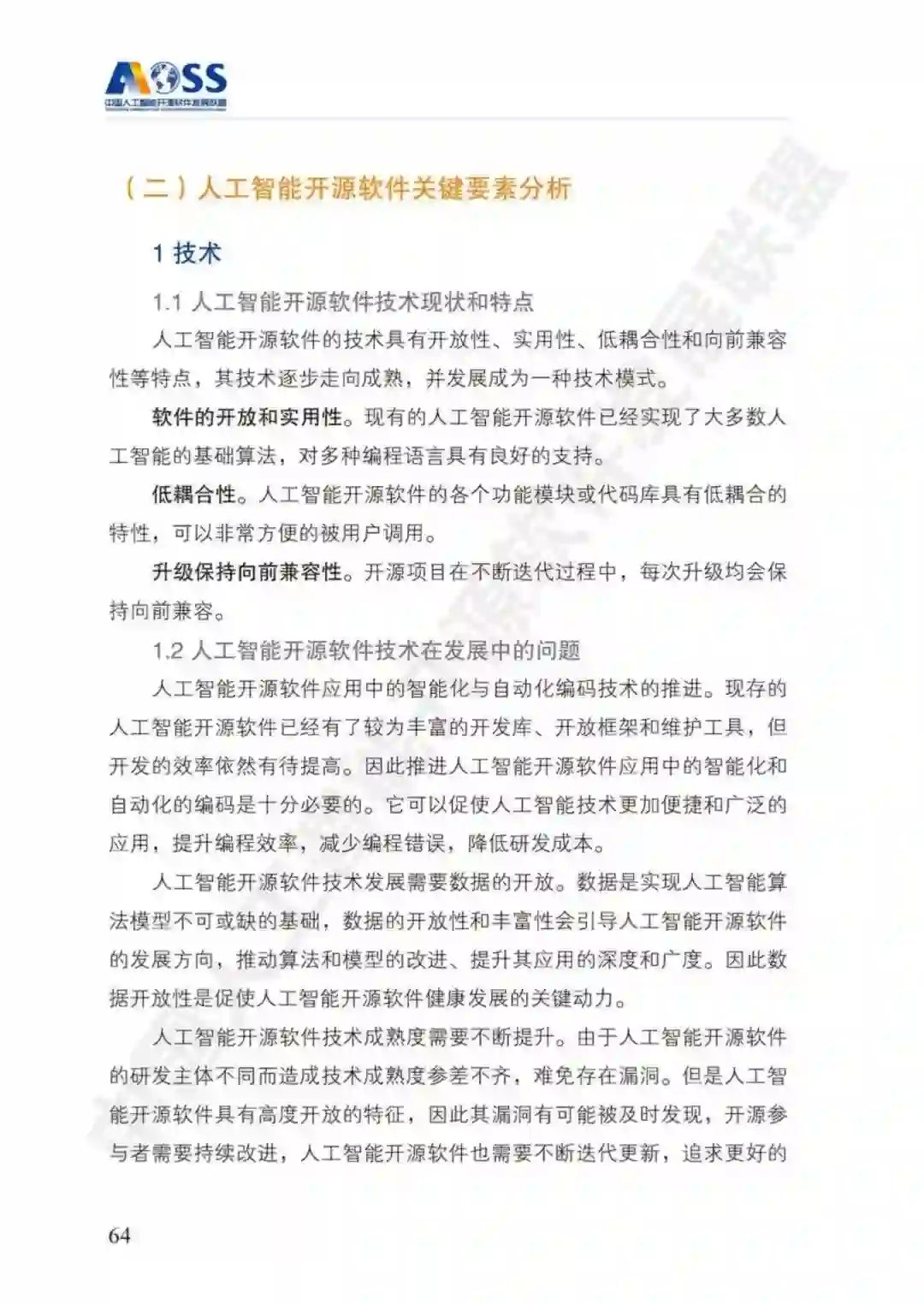 为推动人工智能开源软件快速而健康的发展,中国人工智能开源软件发展联盟召集中国电子技术标准化研究院、上海软件中心、北京大学、微众银行、蚂蚁金服、京东等企事业单位,研究梳理人工智能开源软件发展现状,分析人工智能开源软件生态,提出我国人工智能开源软件发展建议,并提炼我国人工智能开源软件应用案例,编撰形成了《中国人工智能开源软件发展白皮书(2018)》,已作为联盟的一项重要成果发布。