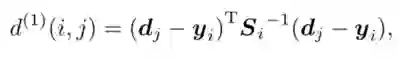 表示第j个detection和第i条轨迹之间的运动匹配度,其中 是轨迹由kalman滤波器预测得到的在当前时刻观测空间的协方差矩阵,