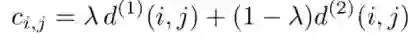 ,然后我们使用第i个轨迹和第j个轨迹的最小余弦距离作为第二个衡量尺度!