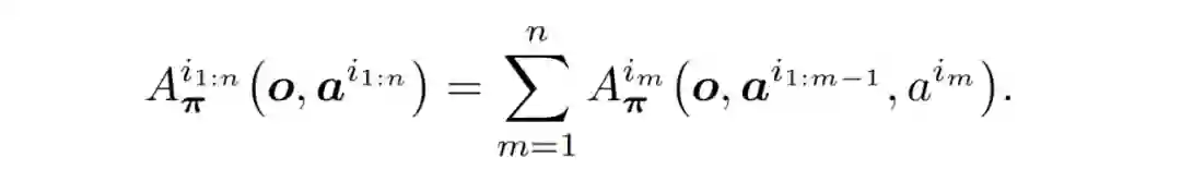 定理 1(多智能体优势分解):令 i_1:n 为智能体的排列。如下公式始终成立,无需进一步假设。