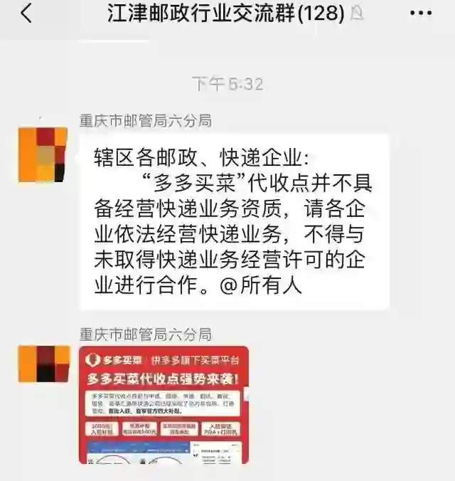 【消息称多多买菜代收快递被禁止】