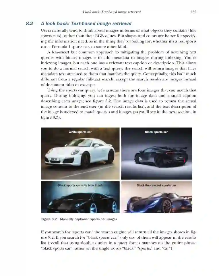 第3部分将介绍更复杂的场景,如深度学习机器翻译和图像搜索。第7章通过基于神经网络的方法为你的搜索引擎提供多语言能力来指导你。第8章讨论了基于内容的图像集合的搜索,并使用了深度学习模型。第9章讨论了与生产相关的主题,如微调深度学习模型和处理不断输入的数据流。