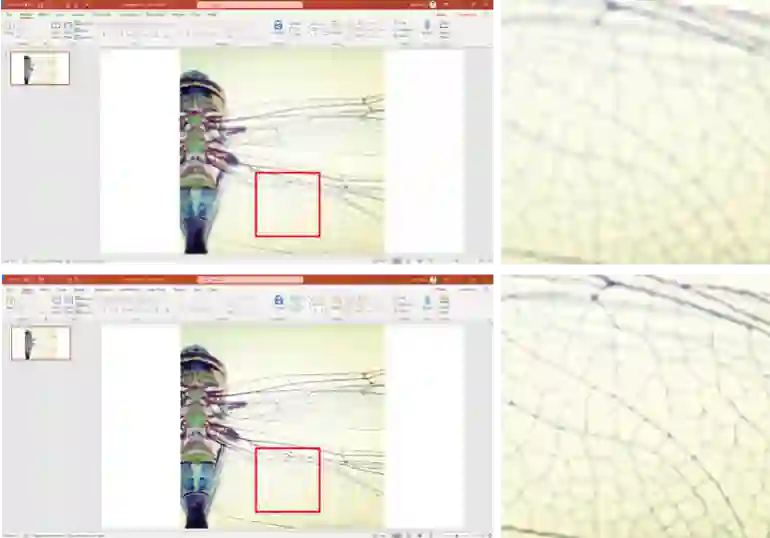 微软亚洲研究院针对这一问题提出了一套全新的图像超分辨率解决方案,在技术上全面领先的同时,该科研成果还将进一步集成进 Microsoft 365 中 PowerPoint 产品的 Design Ideas 模块中,该模块通过人工智能技术,为用户提供各种在幻灯片制作过程中的建议与帮助,提升用户幻灯片制作的效率与最终成品的质量。如图10所示,当用户插入一张低分辨率的图像时,会自动触发 Design Ideas 模块,一旦用户确认使用图像超分辨率技术进行图像增强,原始的低分辨率图像将立即被一张高分辨率的图像所替代,整个过程耗时极低,实际效果却有着很大的提升。