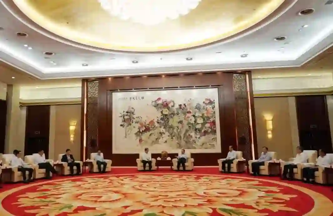 鹿心社书记向考察团一行介绍了广西的区位优势。他说,广西是个好地方,区位条件非常不错,是全国唯一的具有沿海、沿边、沿江优势的地区,面向东盟,背靠西南,毗邻粤港澳大湾区。