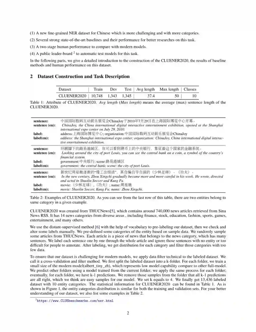 目前可公开访问获得的、高质量、细粒度的中文NER数据集较少,我们(CLUE)基于清华大学开源的文本分类数据集THUCNEWS,选出部分数据进行细粒度命名实体标注,并对数据进行清洗,得到一个细粒度的NER数据集。