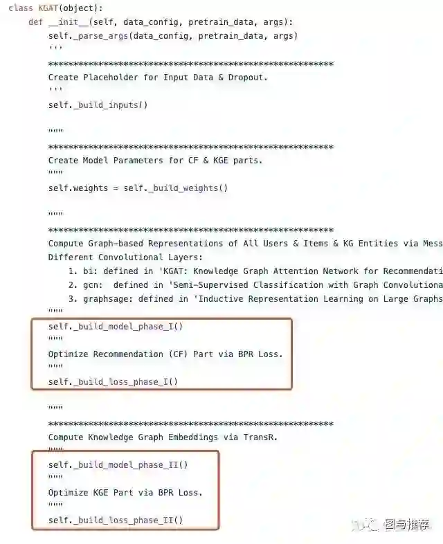 KGAT.py: KGAT模型构建,对应main.py里两部分训练:model是训练CF的图结构,model1是训练KG的图结构。