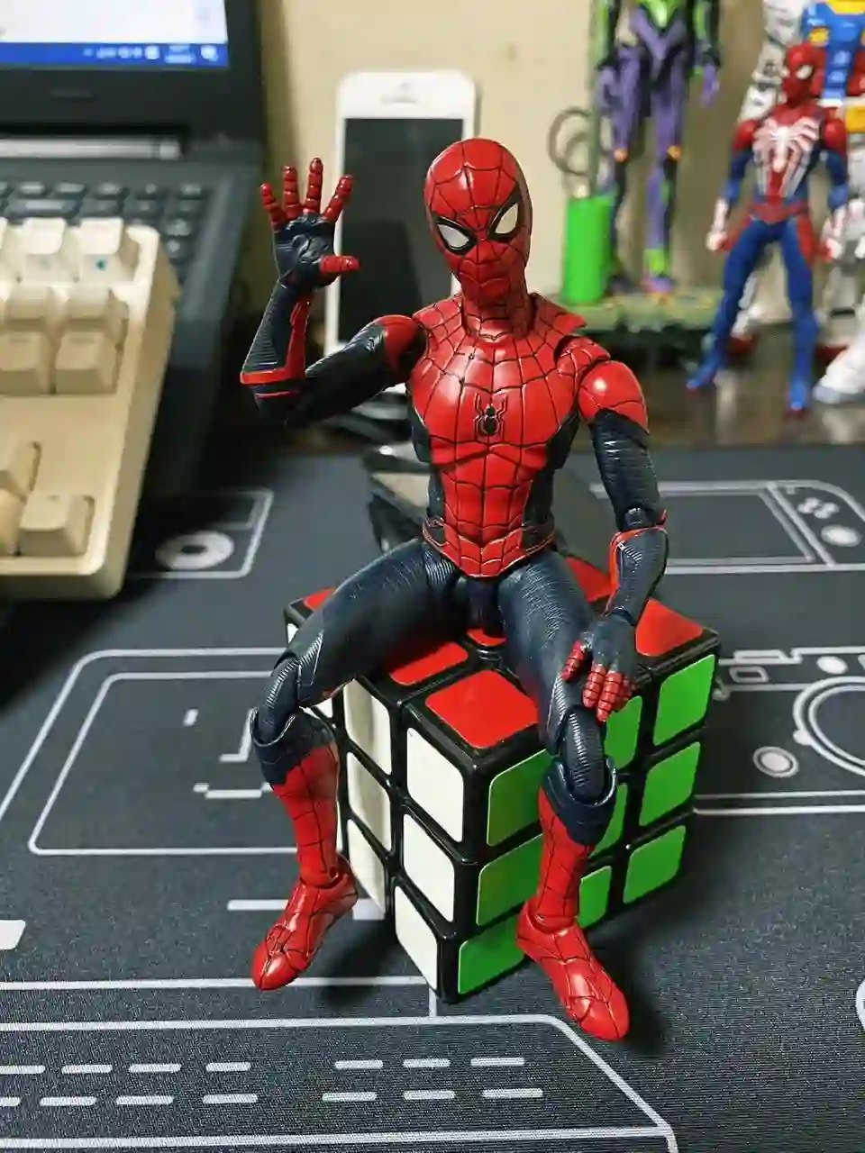 除了工作用品外,我还会在桌面上摆一些小玩具。当我想要休息或者转换思路的时候,就会拿起来在手上把玩一番。我最经常把玩的两个玩具是魔方和蜘蛛侠人偶,在手闲下来的时候,我会拿起魔方拧两下来活动手指。蜘蛛侠则会被我拿来与场景做互动拍照,但由于它的售价远不止 100 元,这里不作推荐。