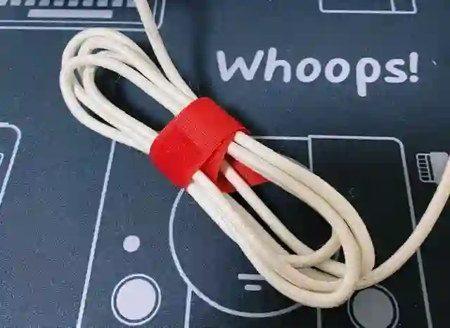 对于键盘线、电脑电源线这类较粗的线材来说,收纳器就无能为力了。这些线往往特别长,于是我使用魔术贴将它们固定起来。相比于那些绕来绕去的「鱼骨头」,魔术贴可以让你顺着线材原本的卷曲方向来固定,对线材更加友好。