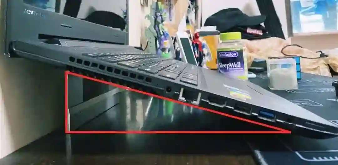 我选择把笔记本支起来的原因有两个,一方面在于将笔记本屏幕抬高,这样在看屏幕时不用低头弯腰,对颈椎更好。另一方面,如果不将笔记本支起来,我的键盘就没地方放了。