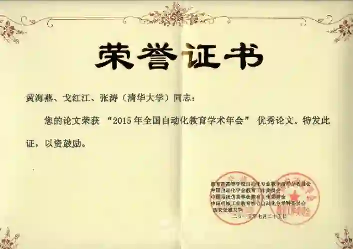 【建设经验推广】2015年7月,在教育部高等学校自动化专业教学指导委员会主办的“2015年全国自动化教育学术年会”(参会约600人)上,项目组成员在分会场与大家分享了《学术规范和职业伦理课程建设》的经验,该论文获大会优秀论文。
