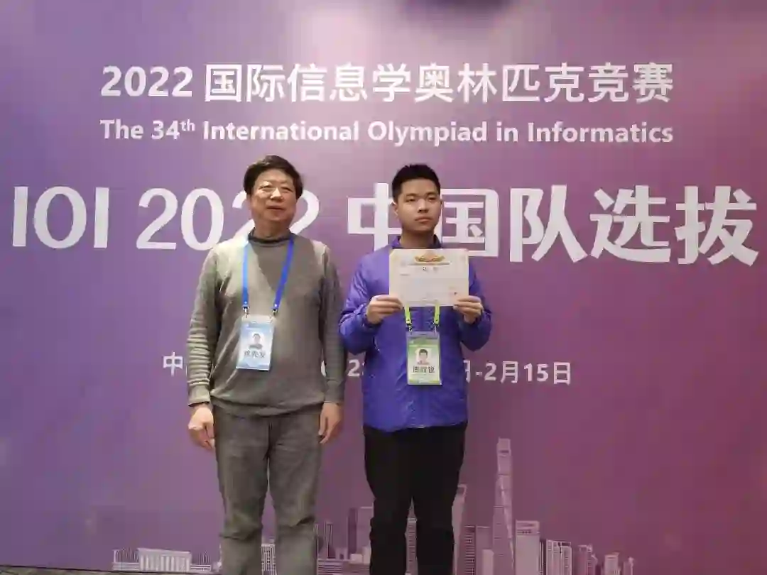 今年2月份,他曾在上海举办的信息学奥赛国家队选拔中突破重围、脱颖而出,成功进入国家队,其教练是刘闽波老师。