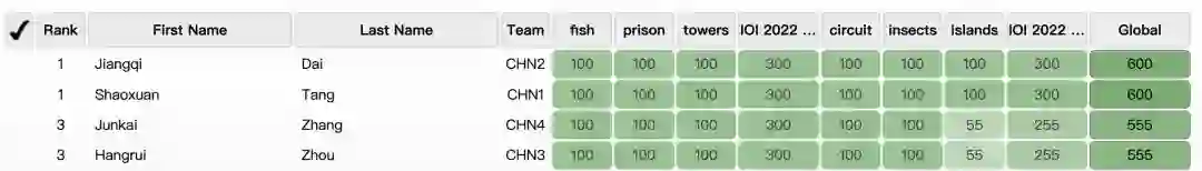 中国队4位选手继IOI 2021再次包揽金牌前四名,2位选手拿到了
