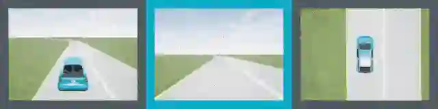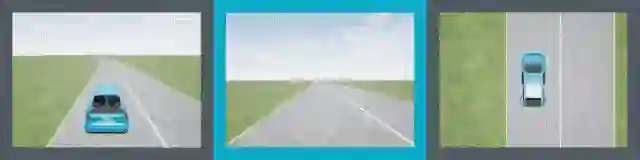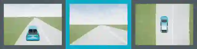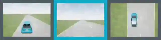 上组动图所示,是我们的车道跟随不同角度显示的模拟环境的示例。这个算法只能看到驾驶员的视角,也就是图中有青色边框的图像。在每一次模拟中,我们都会随机生成一条弯曲的车道,以及道路纹理和车道标记。智能体会一直探索,直到模拟终止时它才离开。然后根据手机到的数据进行策略优化,我们重复这样的步骤。