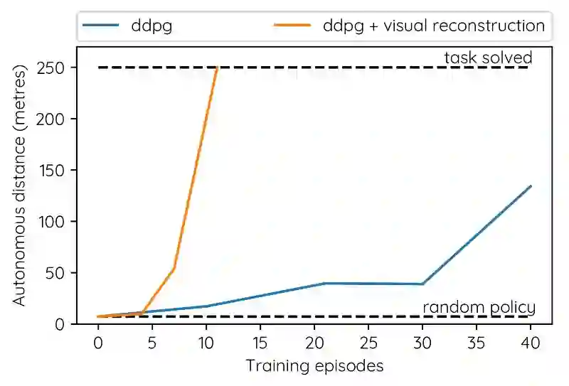 DeepMind 向我们展示了深度强化学习方法可以在许多游戏中实现超人类的表现,包括围棋、象棋和电脑游戏,几乎总是比任何基于规则的系统表现的更好。我们发现,类似的哲学在现实世界中也是可能的,特别是在自动驾驶汽车中。有一点需要注意的是,DeepMind 的 Atari算法需要数百万次试验才能完成一个任务。值得注意的是,我们在不到 20 次试验中,一贯都学会了沿着车道行驶。
