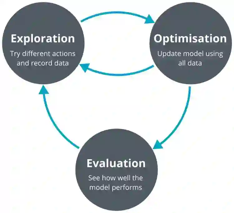 简而言之,强化学习采用的是边获得样例边学习的方式,在获得样例之后更新自己的模型,利用当前的模型来指导下一步的行动,下一步的行动获得奖励之后再更新模型,不断迭代重复直到模型收敛。