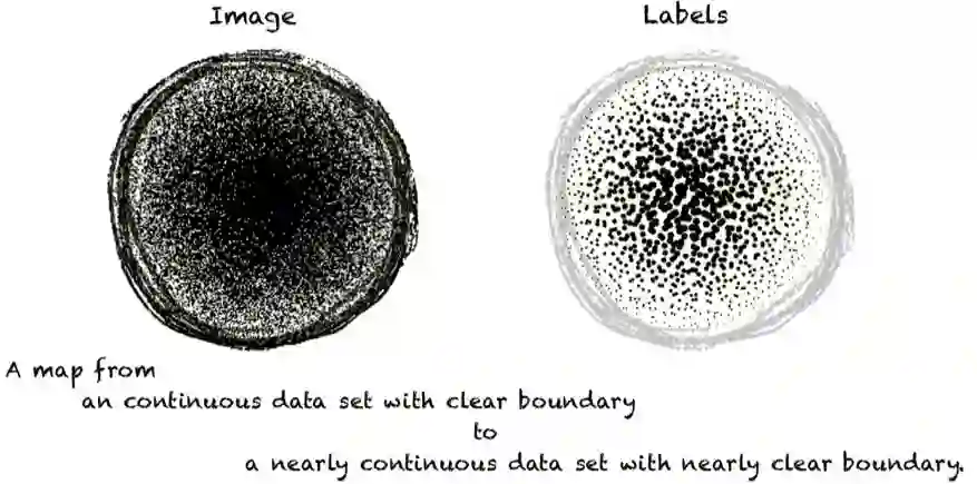 对于图像识别或图像分类任务而言,机器学习的目标是建立一个连续的数据集(图像数据)到一个近乎连续的、有着接近清晰边界的数据集(标签)之间的映射关系。