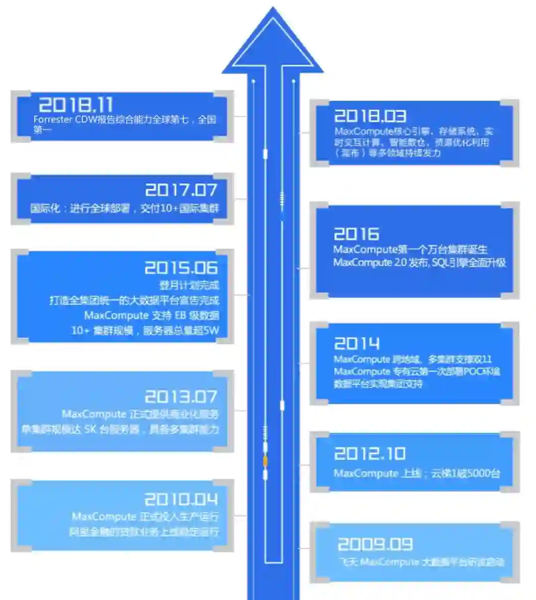 MaxCompute 这10年已经走向成熟,经过多次升级换代,功能、性能、服务、稳定性已经有一个体系化的基础,成为阿里巴巴集团数据中台的计算核心和阿里云大数据的基础服务。