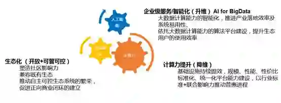 上述趋势,也会得出了作为大数据平台,我们要发力的方向:计算力、智能化、生态系统。