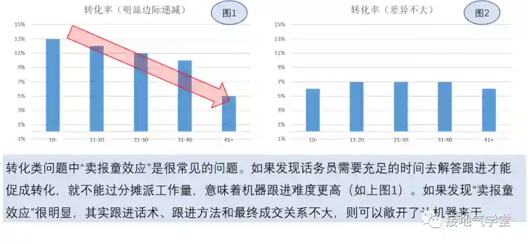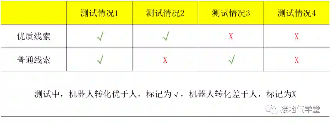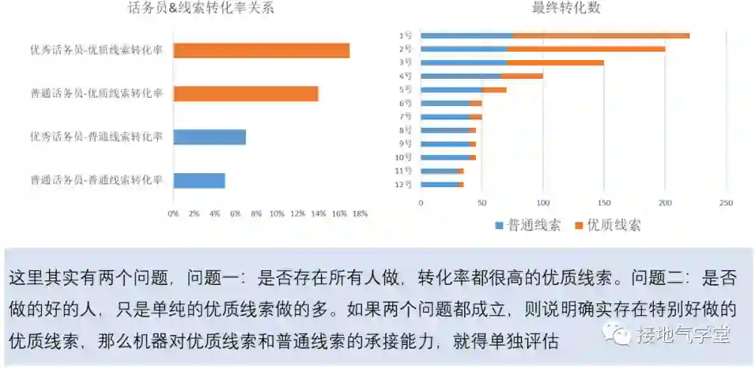 如果有些线索就是天然的转化好,有些怎么做都不行,那么就得考虑:天然好,是因为线索本身就容易转化,还是话务员服务很得心应手。到底机器人能不能承接住这些线索(如下图)。