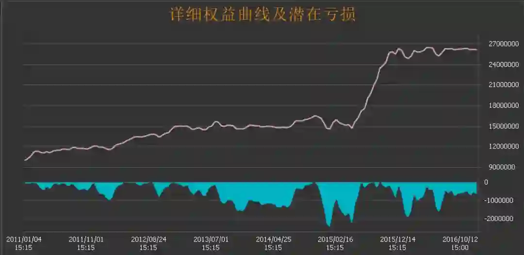 2017年的回测由于软件问题无法给出权益曲线,从指标上来看收益率2.21%,最大回撤4.76%,但胜率依然能有51.85%,总体上讲由于17年市场较为沉寂鲜有较大的行情,这对于主要靠趋势盈利的策略来说很难有所作为,因此业绩表现差强人意,该情形同样也出现在13年和16年。