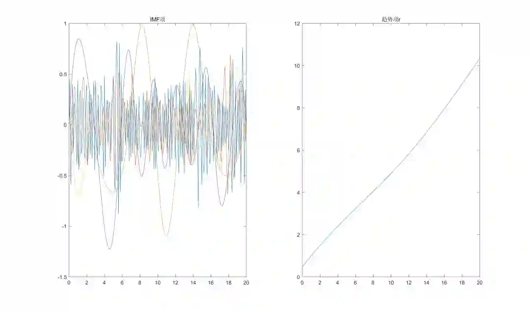 经验模态分解假设任何复杂的信号都是由一些不同的“波动项”和一个“趋势项”组成。这些波动项被称为本征模态函数(IMF),即复杂信号
