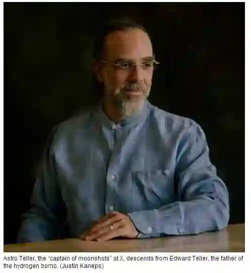 Teller,47岁,来自一个杰出思想家辈出的家庭。他的两个祖父一个是Edward Teller,氢弹之父;另一个是Gerard Debreu,在经济学领域获得了诺贝尔奖的数学家。除了是卡内基梅隆大学的人工智能领域的博士外,Teller还是一名企业家,一个两个时代的小说家,以及《Sacred Cows》的作者(这本书是他经历了离婚和再婚之后与其第二任夫人共同撰写的)。而他的外号——Astro,作为X的掌门人,听起来却不算帅气,这拜他高中的同学所赐,是对他当年的平头发型像人工草坪的一种嘲笑。(实际上,他的真名叫Eric。)