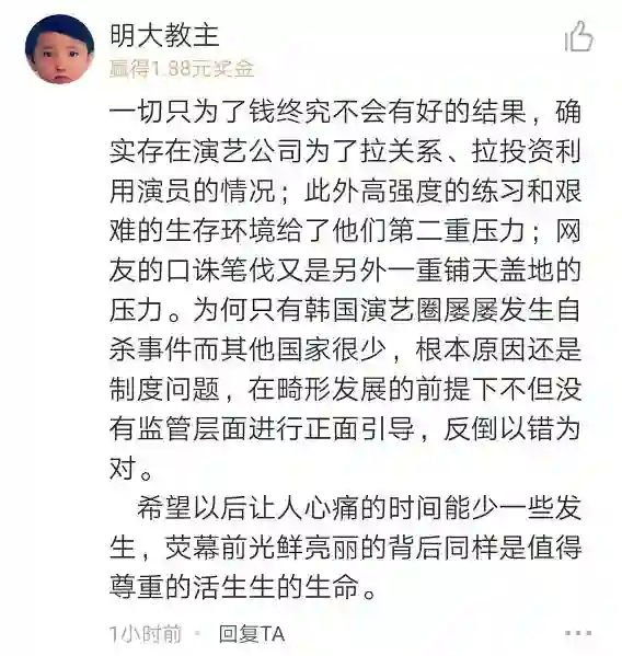 在悲剧发生之后,人们往往只能从过去发生过的一切,猜想逝去艺人们的具体死因。有人认为他们活得太压印,是严重的抑郁症导致的自杀;也有人怀疑悲剧背后另有隐情,一定有不为人知的秘密;还有人会将艺人们的死和生前所承受的舆论压力联系在一起。