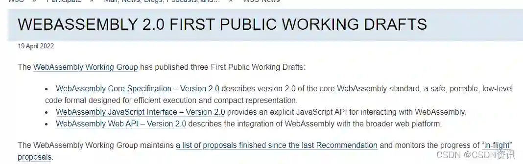 WebAssembly Web API – Version 2.0 :该部分描述了 WebAssembly 与各大技术平台的整合。