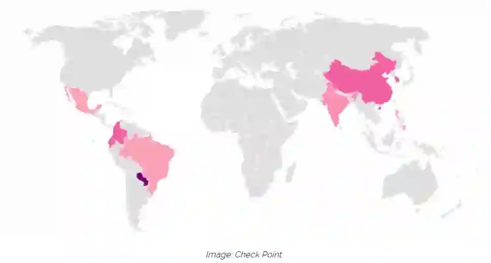 目前感染的地图显示,SpeakUp 受害者主要集中在亚洲和南美洲,其中以中国为主。