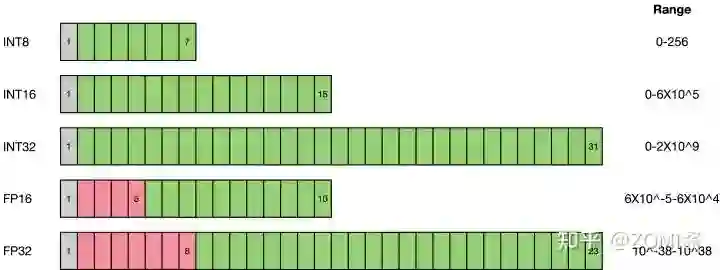 提前从体系结构的考量角度思考量化带来的另一个好处是节能和芯片面积,怎么理解呢?每个数使用了更少的位数,做运算时需要搬运的数据量少了,减少了访存开销(节能),同时所需的乘法器数目也减少(减少芯片面积)。