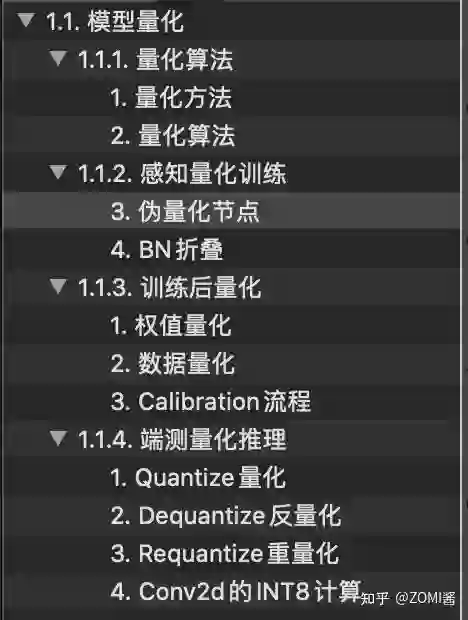 这篇文章比较详细,所以下面这个图是这篇文章的一个整体目录。当然啦,除了非常多的文字,这篇文章塞了59个公式,涉及到量化在推理和训练的内容。虽然可能看得很辛苦,但是也希望可以多多支持ZOMI酱哈。打公式不容易,发现错误欢迎评论留言指正。