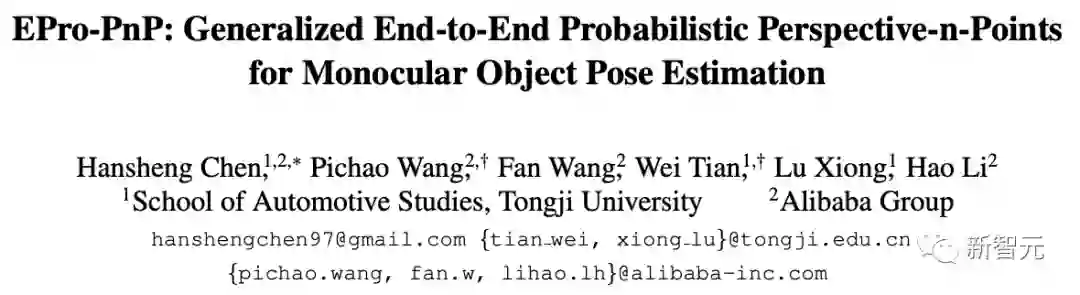 这篇论文,便针对单目图像中的物体6自由度位姿估计问题,提出了一种通用的概率n点透视(PnP)算法——EPro-PnP(end-to-end probabilistic PnP)。