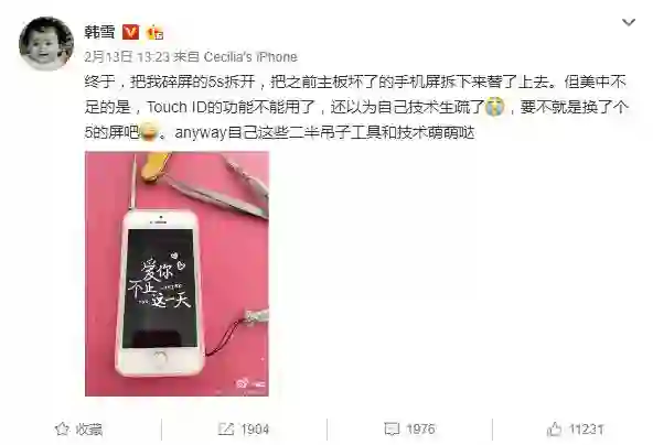 * 本文整编自网络,资料来源韩雪微博、雷科技、科技美学等。如有侵权其第一时间联系编辑删稿。如需转载请联系原作者,本账号系网易新闻·网易号“各有态度”签约账号。