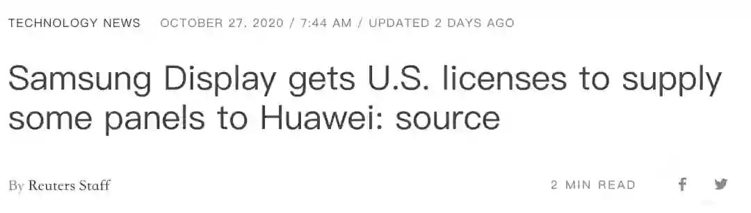 韩国三星电子的显示器部门周二表示,该公司已获得美国许可,可向华为出口用于手机的OLED 显示屏。
