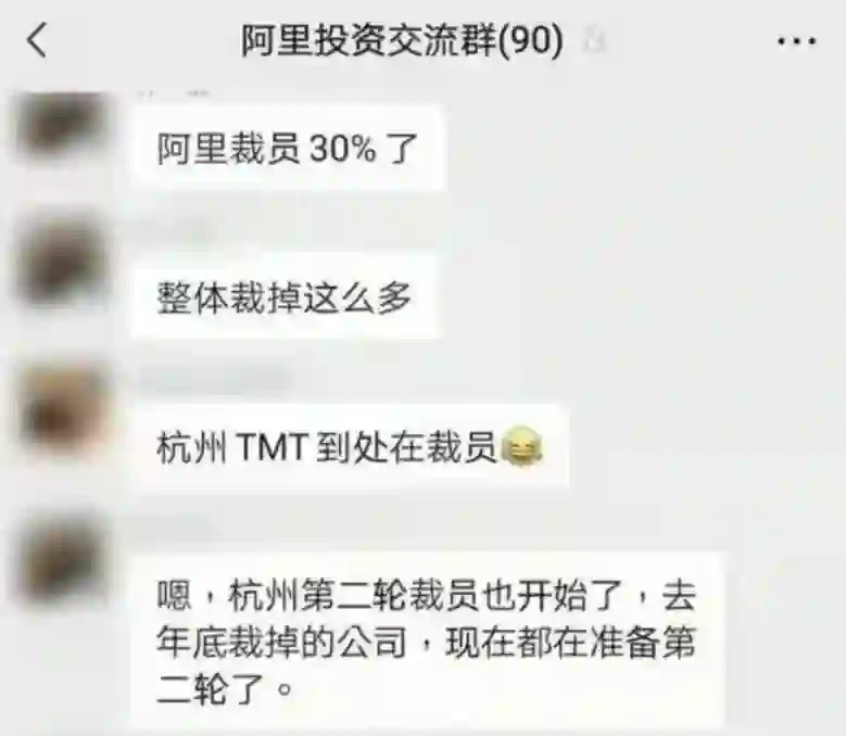 「阿里投资交流群」内部议论纷纷,「阿里裁员30%了」,「整个杭州扛不住」,「真正的断臂求生,看谁的现金熬得过今年」。