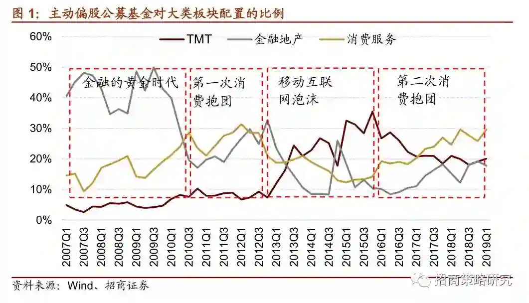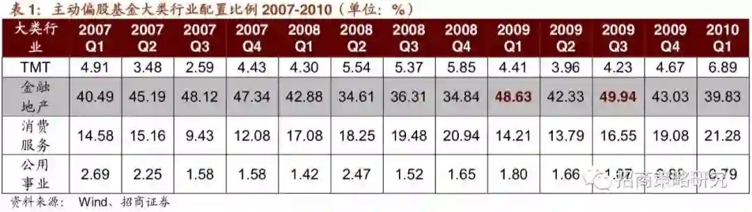 2009年三季度是公募基金对金融板块持仓坚定不移,并使得当时有很多投资者相信:为什么要研究股票,买银行券商就好了啊。但是,这种坚定的信念背后,一股新生的力量开始崛起。并对后来十年的投资产生了深远的影响——那就是以白酒家电为代表的消费。